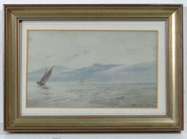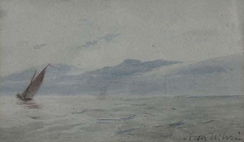 Name: Anchor Sheet Artist: Robert W Weir a/k/a: Blue Seascape, Sail Boats on Windy Water (2011) Year: Format: Watercolor Size: 3.75x6.25 Signed? Robt. W. Weir, lower right Location: Website ID: ANCH1 Estate #: Provenance: Condition: Auction Price: $718 Auction Estimate: $200 Auction Year: 2013 Exhibited? NAD? Tuckerman? Irene Weir Book? William Gerts? Ahrens Plate/Page? References: Notes: Nearly identical to 'Blue Seascape' URL: Score: 1/10 Images:![]()