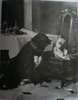 Name: Playful Companions - Dog and Monkey Artist: Robert W Weir a/k/a: Year: Format: Oil on canvas Size: 13x16 Signed? Location: Website ID: DOMO1 Estate #: Provenance: Condition: Auction Price: $3,600 Auction Estimate: Auction Year: 1989 Exhibited? NAD? Tuckerman? Irene Weir Book? William Gerts? Ahrens Plate/Page? References: Notes: Has a dog and a monkey clearly visible. URL: Score: 1/10 Images:![]()