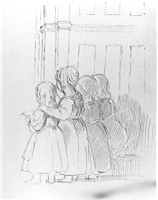 Name: Four Children Artist: Robert W Weir a/k/a: Year: Format: Ink sketch Size: 10x7.75 Signed? Unsigned Location: Private Collection (1976) Website ID: FOCH1 Estate #: Provenance: Condition: Auction Price: Auction Estimate: Auction Year: Exhibited? NAD? Tuckerman? Irene Weir Book? William Gerts? Ahrens Plate/Page? References: Notes: Sketch of 4 small girls, apparently in a church. URL: Score: 1/10 Images:![]()