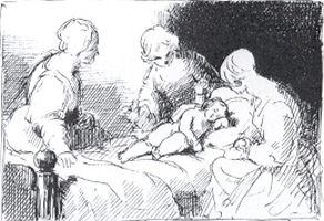 Name: Women and Sleeping Child Artist: Robert W Weir a/k/a: Year: Format: Ink sketch Size: 3x4.5 Signed? Unsigned Location: Private Collection (1976) Website ID: WOSL2 Estate #: Provenance: Condition: Auction Price: Auction Estimate: Auction Year: Exhibited? NAD? Tuckerman? Irene Weir Book? William Gerts? Ahrens Plate/Page? References: Notes: Woman on left is leaning on bed with one arm URL: Score: 1/10 Images:![]()